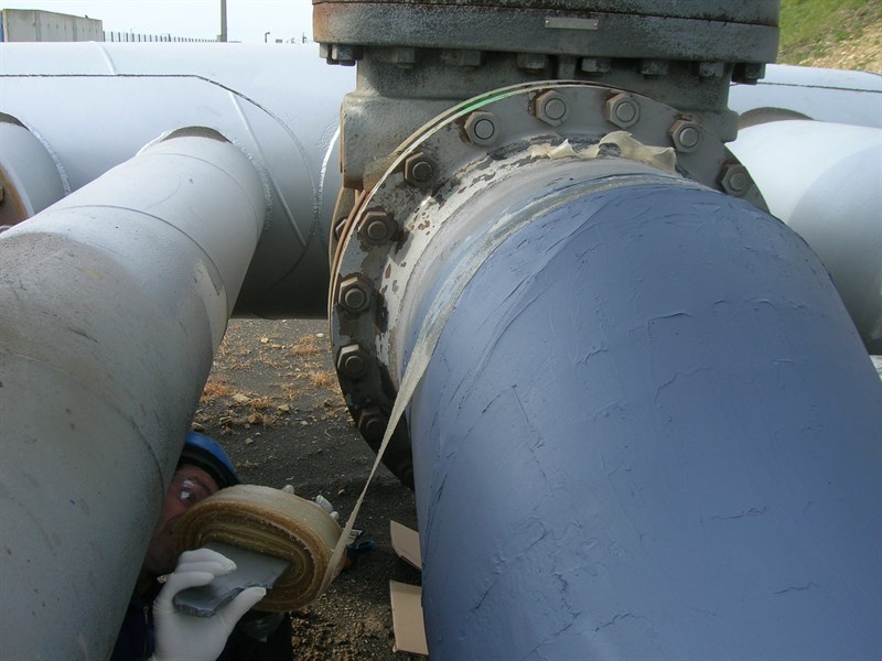 Problem: Corrosion occurs where the buried section of pipeline re-emerges above ground. The high humidity at ground level causes severe corrosion to these exposed sections of the pipeline.