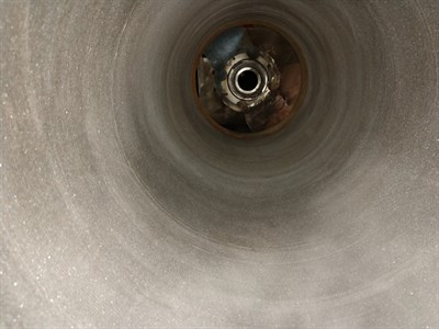The application was carried out in accordance with SOS-9 BelzonaKnow-How System Leaflet. The substrate was machined down via boring to achieve a clean, solid substrate free of any corrosion. Substrate was then blasted with an angular grit to give a minimum surface profile of 3 mils. Substrate was then power washed with HoldTight 102 to bring salt contamination to acceptable levels. Belzona 1111 was then mixed and applied to build up the surface proud and then once cured, machined back to tolerance.