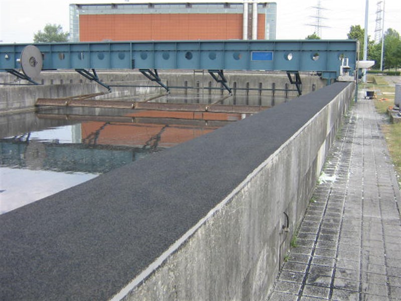 Application was carried out in accordance with Belzona Know-How System Leaflets FPA-1 & 8. After preparing the top of the walls with a milling machine, the substrate was rebuilt and levelled with Belzona® 4111. The thickness varied between 2 and 50 mm. To provide additional traction for the wheels, Belzona® 5811 was applied and Belzona® 9211 added to the surface to provide a positive grip system.