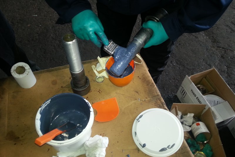 Application was then carried out in accordance with Belzona Know-How System Leaflet ENC-2 using Belzona® 1321 after first repiring holes in side of casting by bonding plates in place with Belzona® 1221.