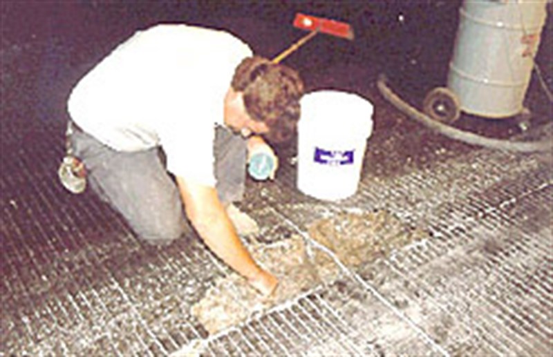 Belzona® 4111 (Magma Quartz) was mechanically mixed after the damaged areas were prepared and thoroughly condi-tioned. The repair material was hand applied and accelerated with infrared lighting to sufficiently cure in the scheduled four-hour downtime. Nine other repair materials were tried, but all failed because of a combination of slow cure times and poor adhesion characteristics.