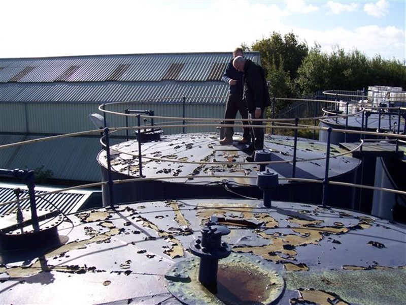 Problem: Existing coating had delaminated from tank roofs exposing steelwork underneath. This in turn corroded resulting in holed tank roofs.