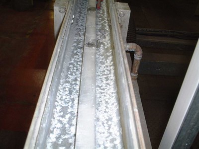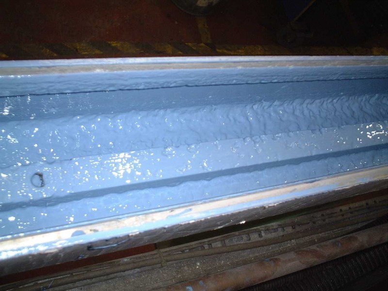 Problem: Micro-biological fouling occurring in trough due to temperature and pitting of substrate caused by chemicals used. This was causing health and safety issues and also leaks at joints.