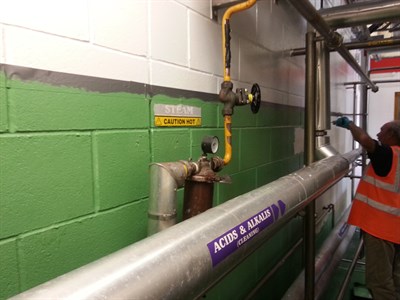 Problem: Due to chemical spills and damp conditions the walls were in need of repair and protection.
