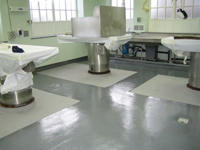 The whole application was carried out over one weekend. The low odour, solvent free Belzona products did not impact on the normal activities of the hospital. The Belzona system has provided the hospital with a hygenic, safe and hard wearing floor in the mortuary.