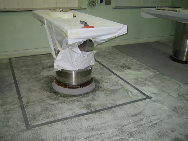 Application was carried out in accordance with Belzona Know-How System Leaflets FPA-1 & 8. The Belzona® 4131 was first applied for the repairs to the bases of examination tables, and following this, a dark grey Belzona® 5231 with 15% grey aggregate was applied to give the positive traction system the customer required.