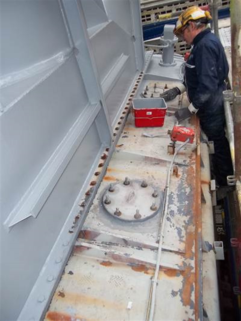 Application was carried out in accordance with Belzona Know-How System Leaflet VPF-11a.. After the surface was prepared using an MBX Bristle Blaster followed by degreasing the substrate, Belzona® 1161 and Belzona® 9341 (Reinforcement tape) were applied onto the whole surface of the flange faces in order to stem the leaks.