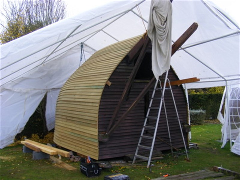 Once the sails had been removed the wooden cap was taken down and work could commence to replace any rotten or damaged timber. Upon completion of the structural work the fully reinforced Belzona 3111 system was applied in accordance with Belzona System Leaflet RPA-1. With all the overlapping timbers it required the patience of a craftsman to carefully lay the reinforcing sheet into the Belzona 3111 to achieve a wrinkle free finish with the sheet closely following the substrate profile.
