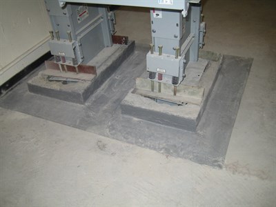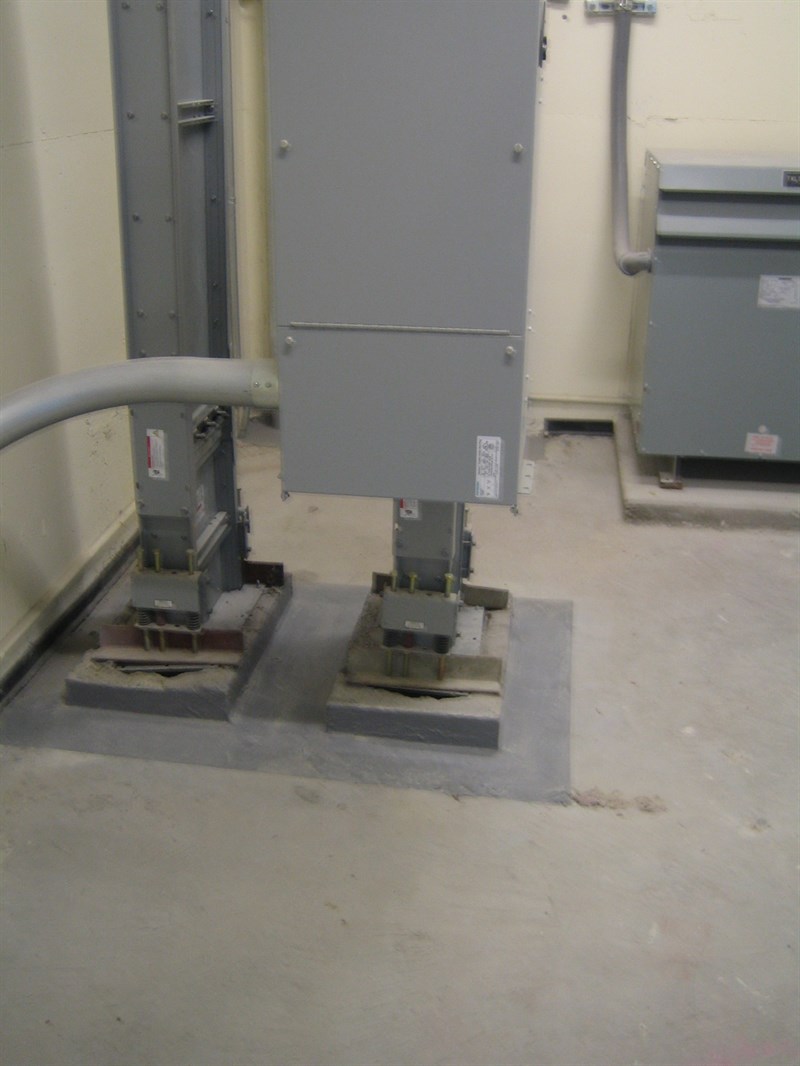Problem: The openings on each floor that allow the power lines to travel the length of the structure were subject to water penetration between the concrete floor and curb