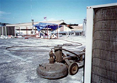 Problem: Water penetration through various cracks and at equipment support pads. Leakage was also suspected through 120 linear meters of expansion joints.