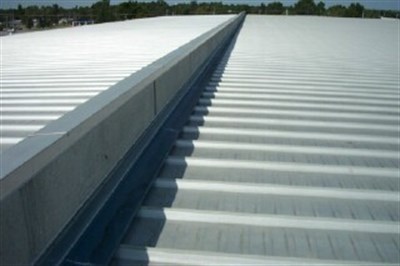 Problem: The material used to seal the flashings on this firewall had become brittle and cracked, creating fissures for water to seep into the building. A solution was needed that was both flexible and UV stable to protect this pharmaceutical storage facility housing millions of dollars of product.