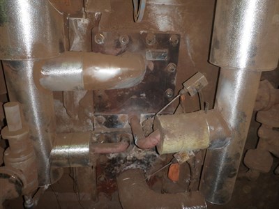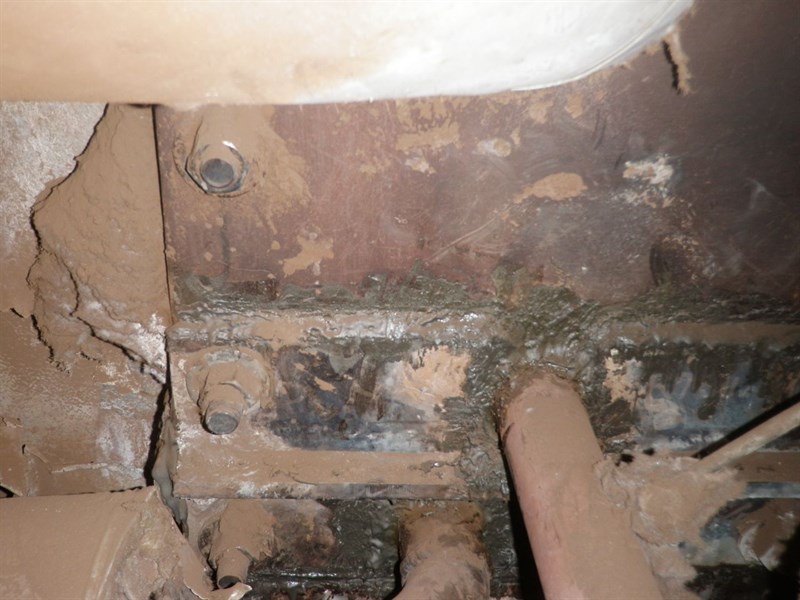 The gap between two of the plates was sealed using Belzona 1251. The area to be repaired was cleaned with a hand-held wire brush. Then, Belzona 1251 was applied with a metal spatula onto the hot surface (temperature varied from 200°F to 330°F depending on location). In the area of the worst leak, Belzona 1251 was applied to reduce the hole size to approximately ¼" and a small bolt was then packed with Belzona 1251 and inserted. The bolt head was then covered with a cap formed of thin metal sheet, filled with Belzona 1251, and held in place until the product set. This repair was performed with the unit active and specialized PPE was worn accordingly. The application was carried out in accordance with a modified version of Belzona Know-How System Leaflet HEX-5.
