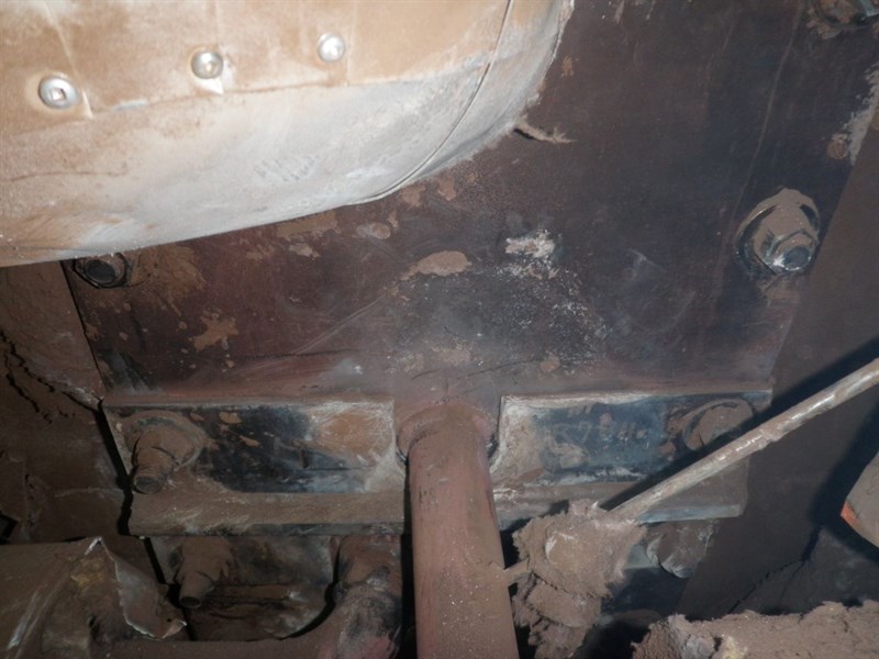 The surface temperature of these plates is about 300°F when the unit is operating and it cannot be shut down. The roasters must be kept airtight to prevent air from contaminating the process and SO2 gas from escaping. This facility has had many successful Belzona repairs so help was sought from the local Belzona representative. With Belzona, the leak of hot SO2 gas was completely stopped in less than 2 hours.