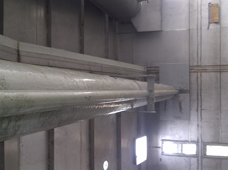 The application was carried out in accordance with Belzona Know-How System Leaflet TCC-5. All areas were prepared by grit blasting with platinum slag. All detail work such as welds were stripe coated. Belzona 5891 applied at 600 micron was selected for all of the channel iron structural steel, approximately 2700 m² in total. Belzona 1391 was applied to the spiral feeds and all steam inlet pipes, approximately 500 m², at 900-1000 micron thickness.