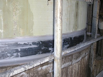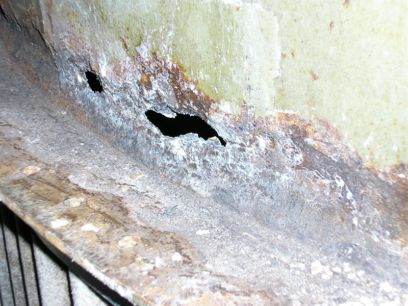 Problem: The tank was experiencing classic Corrosion Under Insulation caused by water ingress that was sitting on the lagging bands around the tank and soaking through the lagging. The problem was further exascerbated by the elevated temperature of the tank. Problem made still worse by the lining material being highly volatile requiring a Nitrogen shroud before and during any potential welding operations.