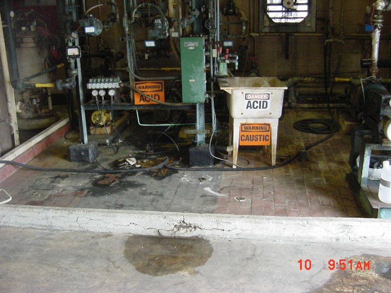 Problem: Acid and Caustic spills were eating into the rough brick floor. Environmental and safety concerns became critical.