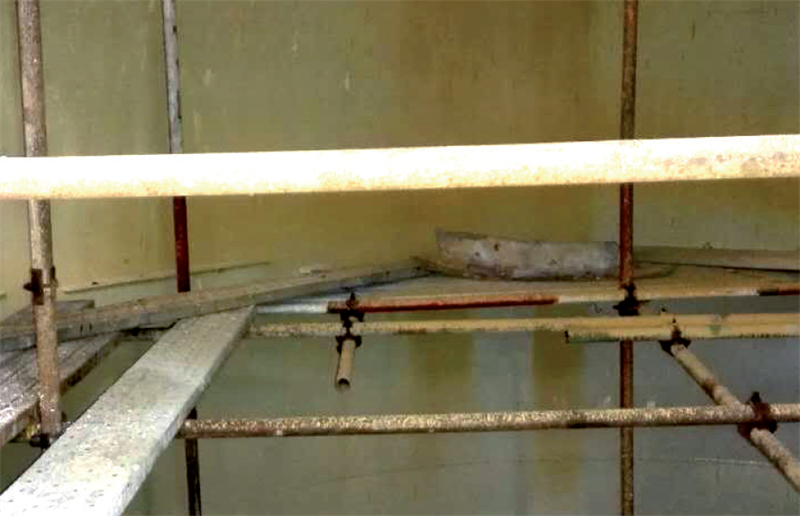 Problem: This complex tower in an oil refinery plant has been corroded by acid and alkali substances(such as H2S, SO2, H2SO3, H2SO4, NaOH) for a long time, resulting in the failure and cracking of the original coating. The stainless steel bracket inside the tower also appears various degrees of corrosion.