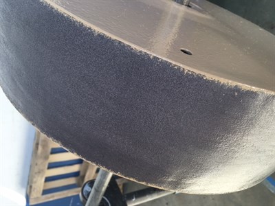 The application was completed in accordance with an adapted version of Belzona System Leaflet SHM_12. A test patch of Belzona 1812 was applied to the wheel to see if the magnets would still work covered with Belzona. A 4 kg tin can magnetically stuck to the wheel so the application went ahead. The previous polyurethane coating was removed and the steel was then blasted before reinstalling the magnets and applying Belzona 1812. Acetone was used to make the wheel look smooth and the sides were coated with Belzona 5811 for aesthetic purposes before delivering to the customer.
