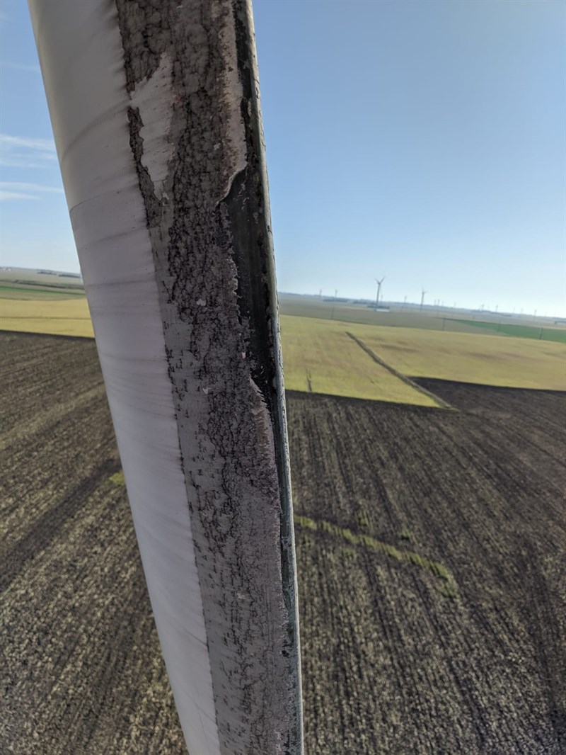 Problem: Over time, the leading edge of wind turbine blades become eroded and lose efficiency and power production for the turbine generator. Because of the time of year, the weather was very cold, and a blade repair solution was needed to properly complete the repairs.