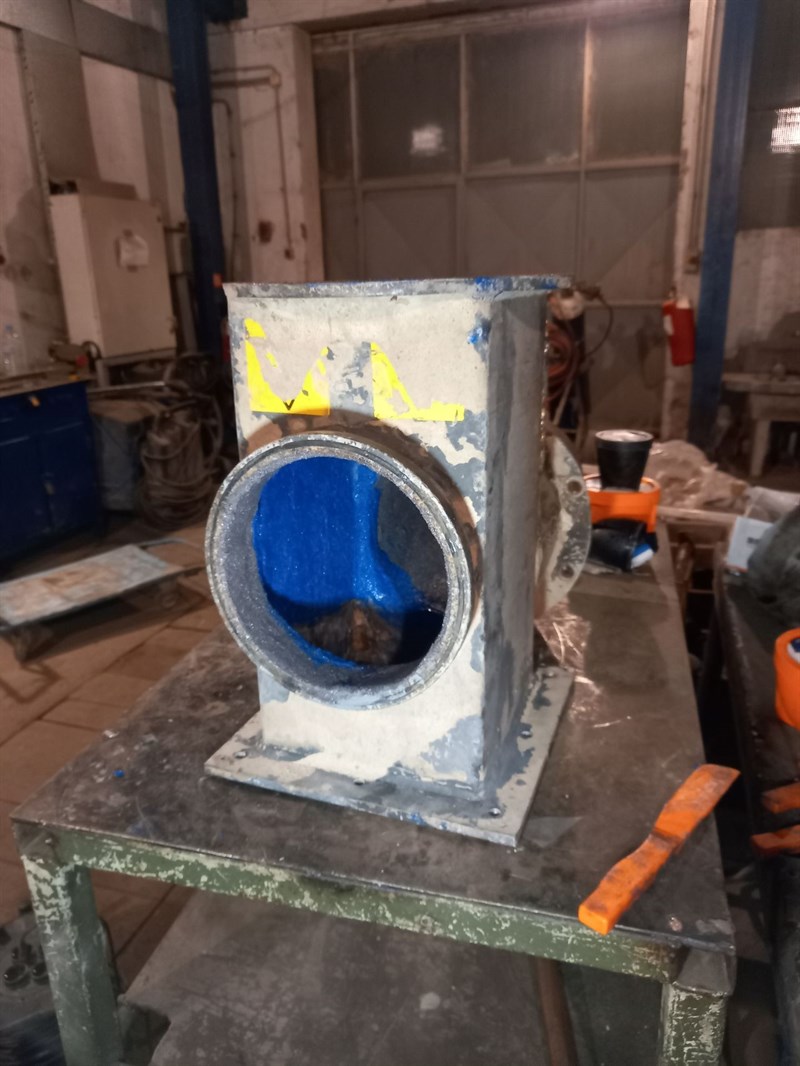 This work for protection takes place routinely in the local cement plant per year. New pipes last one year before being damaged. This is why Belzona is used to protect the new parts of this machine. In this case, due to severe damage to the housing, pipes and cone fittings, new pieces of steel sheets were welded by another specialized company and then the parts were protected internally. Belzona 1111, Belzona 1812 and Belzona 1818 were used. The time given for repair, protection and solidifying of the materials was very short and that is why Belzona 1818 was applied to the last part late in the evening in order to mount the parts faster on the truck and to continue working process.