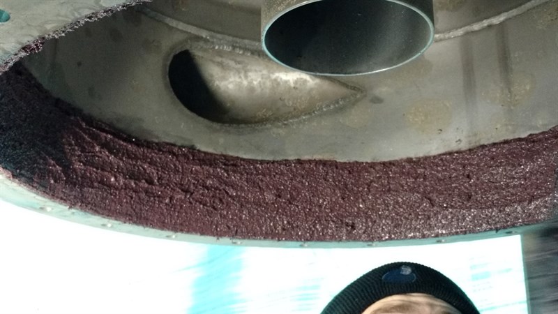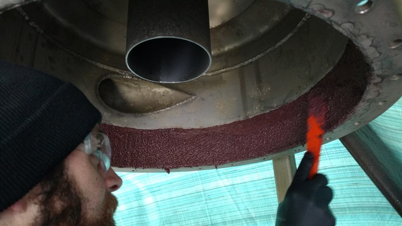 The Grit Snail manufacturer applied a 6" wide band of 1811 in the wear area of the grit bowl. It is a sacrificial coating and must be renewed from time to time. Replacement bowls are quite expensive, thus having a protective coating that extends the service life of the equipment is ideal
