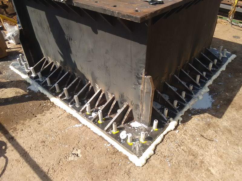 Problem: Due to constant movement and vibration created between the skid and the concrete foundation, the heads of the bolts holding the base down started to break off.
