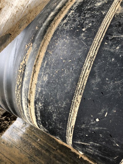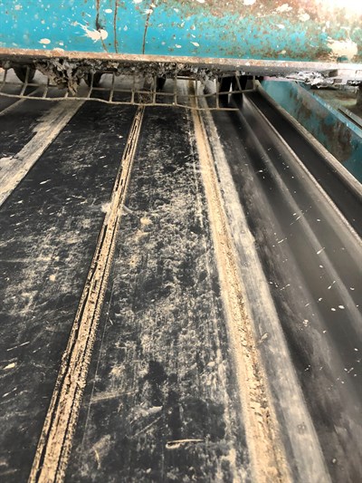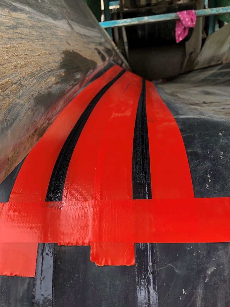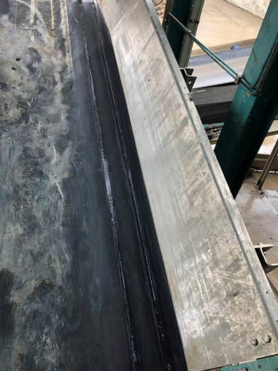 A recycling plant specialising in urban mining, extracting and reusing building materials from previous sites e.g. concrete. At the facility, a large conveyor belt had become caught on a defective scraper, causing a linear tear over 32m along the rubber.