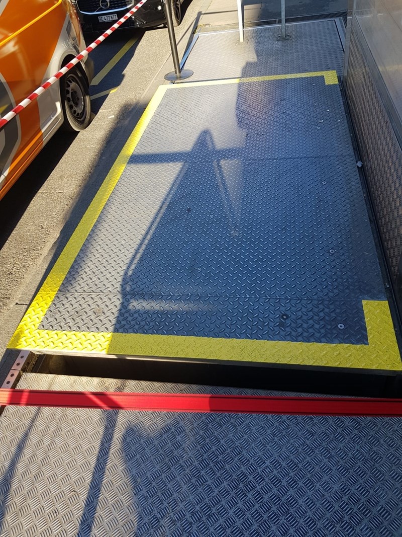 Problem: The customer wanted a coating that was both visible and tangible, as the loading ramp can be raised to 1.15m.
