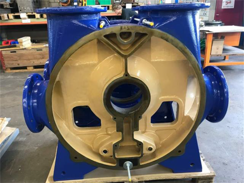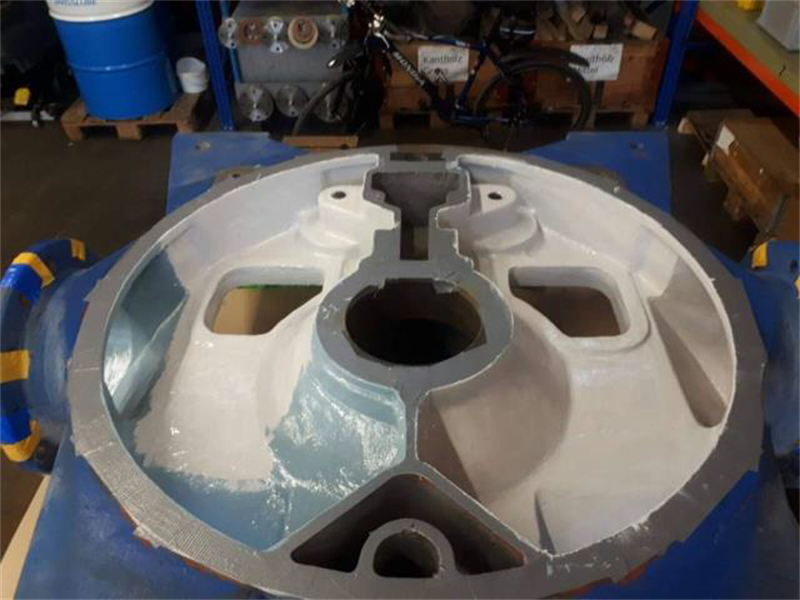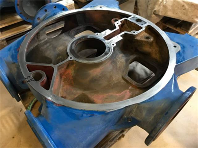 Problem: The long running time and high loads resulted in wear damage and corrosion on the housing. The flanges on the housing were washed out by installing the wrong seals.
