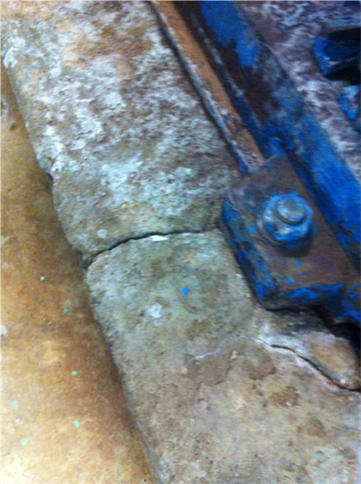 Problem: A pump sitting on a concrete block was no longer properly aligned causing shear stress.