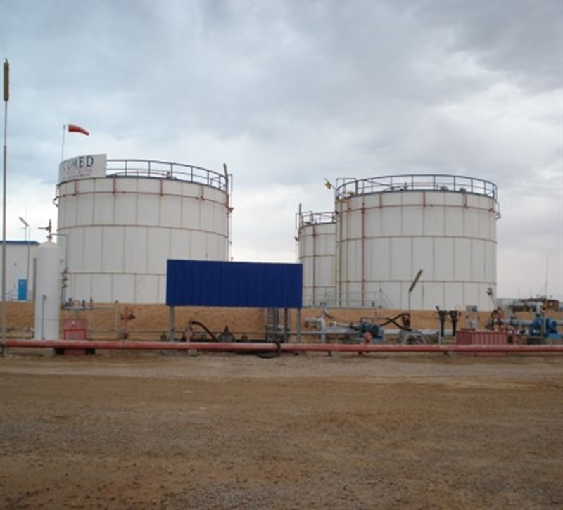 Crude oil storage tank.