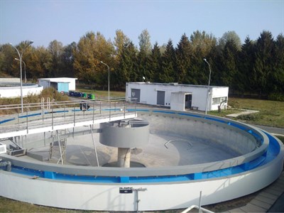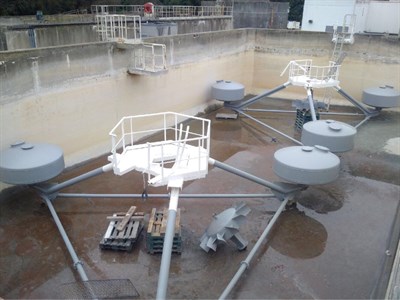 Concrete roller track,metallic turbines and floats of a clarifier.