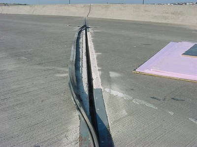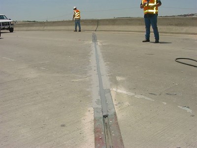 Problem: Loose, dangerous expansion joint. Client needed a way to restore the joint edges and seal the joint while minimizing traffic disruption.