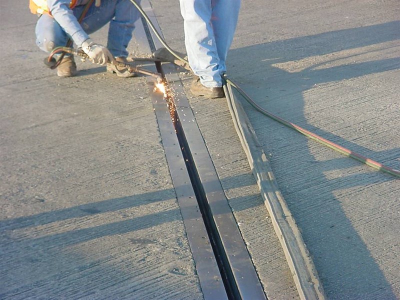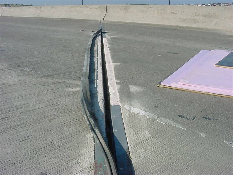 Steel armored expansion joint on a busy interstate/highway bridge.