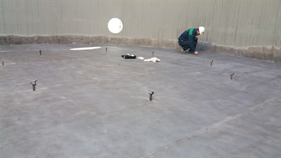 Refurbishment of the internal base of a storage tank.