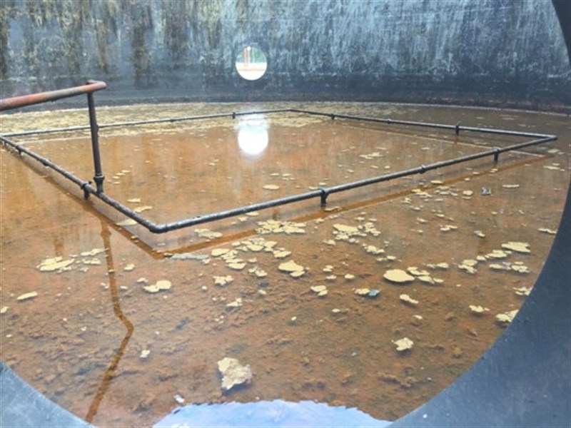 Problem: Due to a mixture of water and hydrocarbons, the bottom of the tank had started to corrode where the water sits. This is because the density of the water is greater than the hydrocarbons and as the steel is unprotected the tank corroded at the bottom.