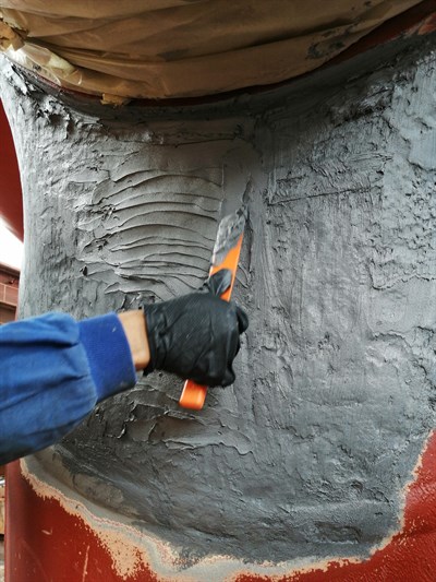 Application was carried out in accordance with Belzona Know-How system Leaflet SOS-01. Application surface prepared with grit blasting to achieve SA2½. Surface then cleaned with Belzona 9111. Belzona 1311 was used to repair the damaged surface.