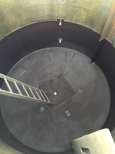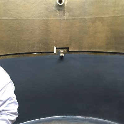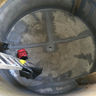 Problem: An existing fiberglass lining had failed at the bottom of the tank due to not having the correct chemical resisatnce for the range of chemical circulating the tank. The failed lining resulted in a loss of material at the base of the tank and also leaving the substate unprotected and exposed to further chemical attack.