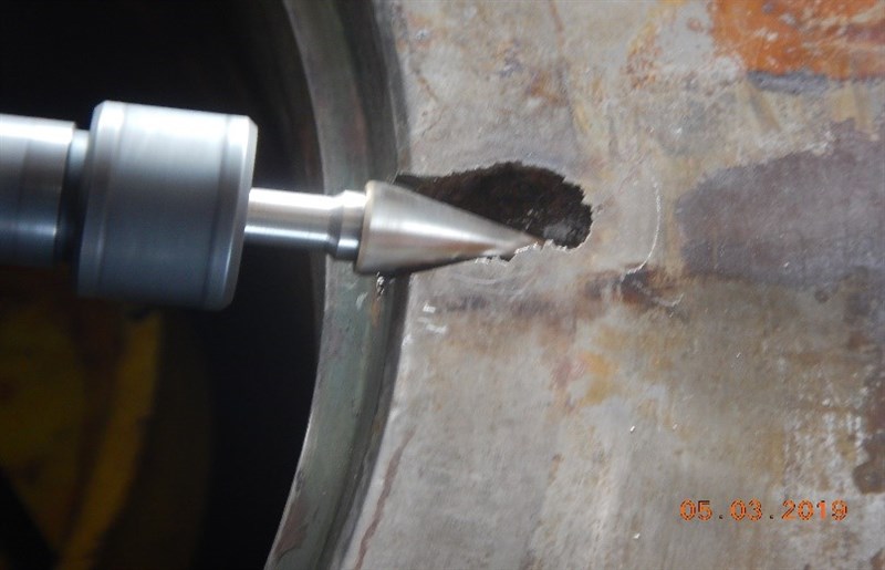 Welding was impractical for this repair as hot work on the pressurized equipment would require further hydrostatic testing to confirm the integrity of the equipment. It was also deemed undesirable due to the intrusions of heat stresses on the substrate, and the potential to introduce galvanic corrosion. Belzona was a fast and easy cost effective repair that was cured and returned to service within 24 hours.