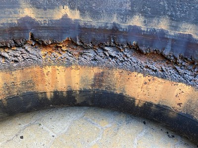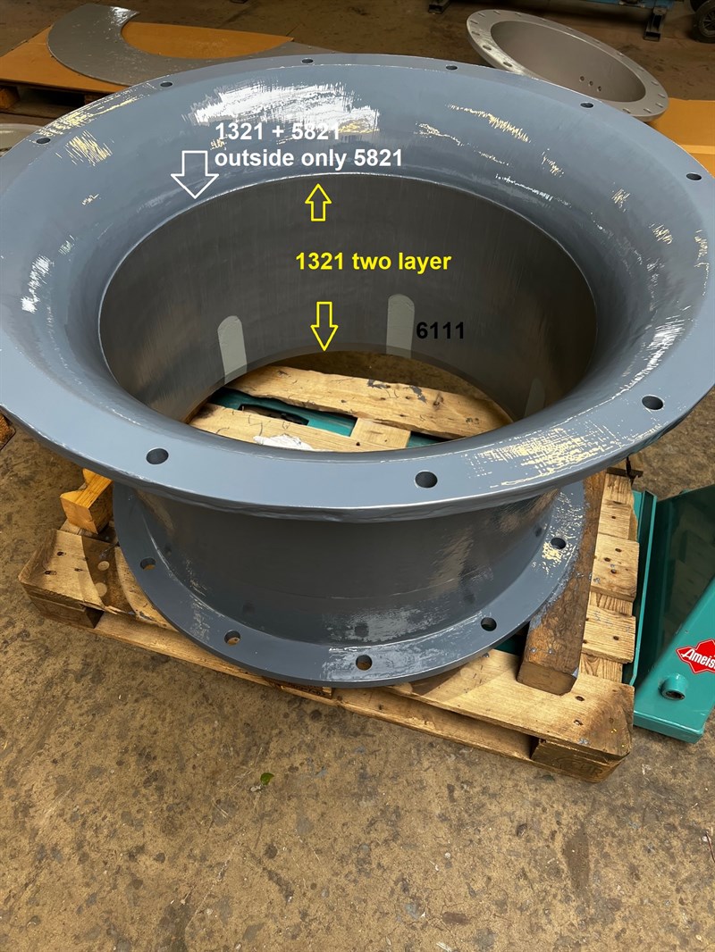 After blasting in accordance with Belzona standards the corroded areas were filled with Belzona 1311 and then coated the complete inside with two layers of Belzona 1321. The upper part we overcoated and then the external coating was coated with Belzona 5821. Please refer to Belzona systems leaflets CEP-03 & CEP-05 for further details of products that can be used for this type of application.