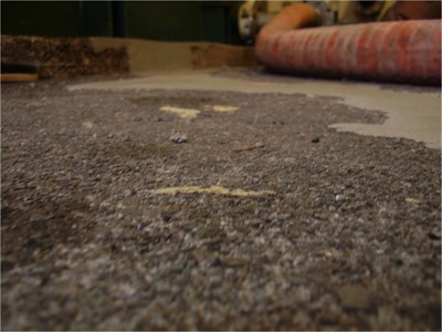 The areas requiring repair were washed down. As per the IFU once dry the areas were coated with Belzona® 4911 followed by Belzona® 4131. We discovered that the process worked best when applied by (gloved) hand whilst holding the trowel against the concrete edge and sliding the trowel away once the Belzona® 4131 was in the void.
