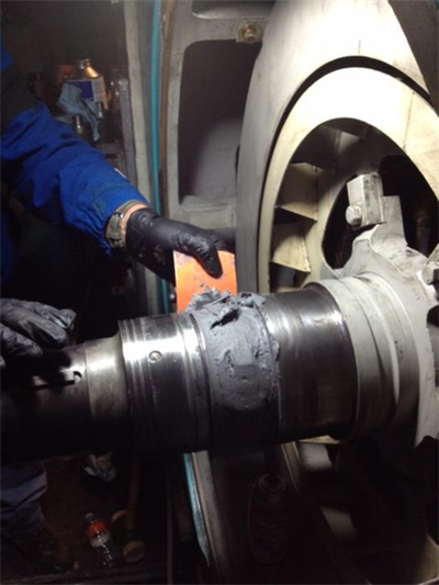 Problem: The shaft in this wind turbine at a wind farm was not grounded properly causing electrolysis damage. The damage was considerable and was destabilizing the turbine.