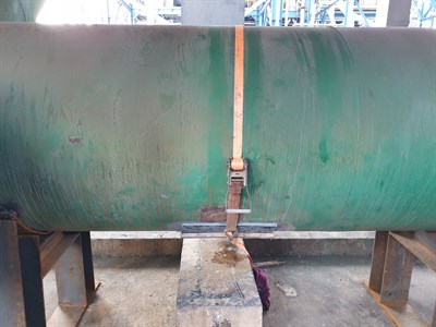2). Plate bond using Belzona 1212 and held in place using a strap during the polymerisation stage.