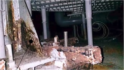 Problem: During the life of the exhibition, the metal support structure underneath the exhibition was heavily corroded by the oxidising nature of the Bromine Water. The museum were concerned about the corrosion and thus the decreasing strength of the supports.