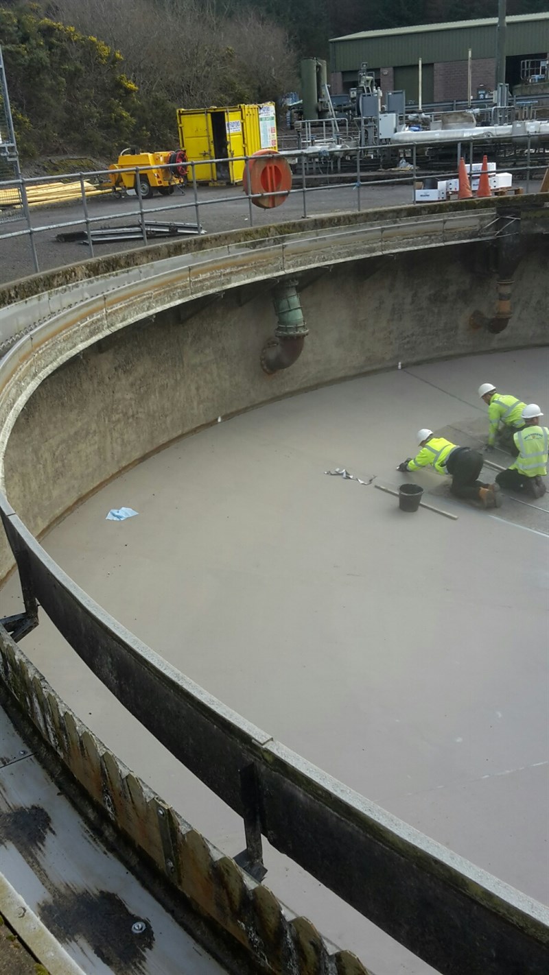 The application was carried out in accordance with a modified version of Belzona KNow-How System Leaflet FPA-1. The concrete was first power washed and prepared mechanically. The clarifier was marked out into sections. Each section was then conditioned with Belzona 4911 and then 6mm of Belzona 4131 applied.