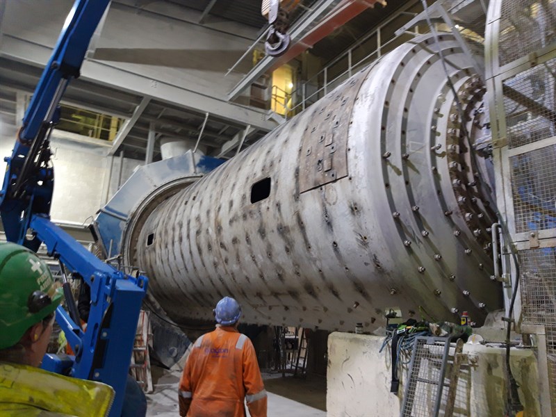 Using conventional grit blasting methods, the substrate was prepared to a standard minimum surface profile of 75µm and a surface cleanliness of SA 2½. The client then rotated the ball mill 180° to allow for the rest of the mill to be prepared. Belzona 1511 was then forced into the blasted profile by brush. This material was then used to reprofile the damaged areas using an applicator and straight edge across good steel to use as a datum. Once all of the reachable areas where repaired, the ball mill was then rotated again by 180° and the remaining repairs were undertaken.