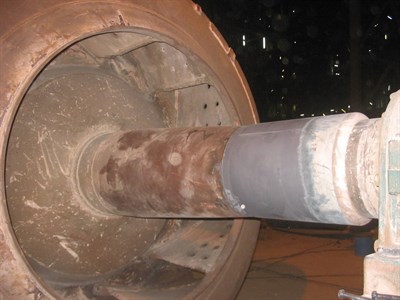 Problem: Deeply worn shaft due to abrasion from cement - leading to potential bearing failure.