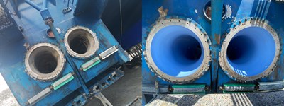 Problem: The 4 Jet Tubes presented severe pitting and cracking, due to erosion and cavitation. This existing paint system has failed locally, leading to metal loss and cracks.
