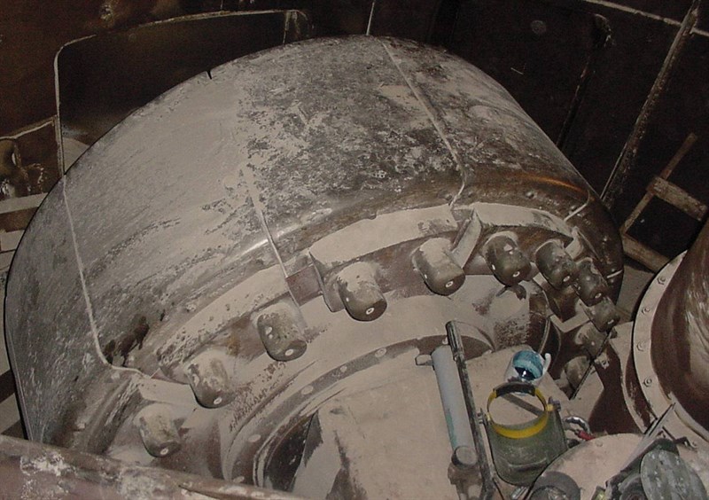 The roller in a vertical mill at a large cement factory.