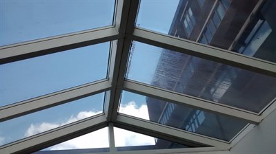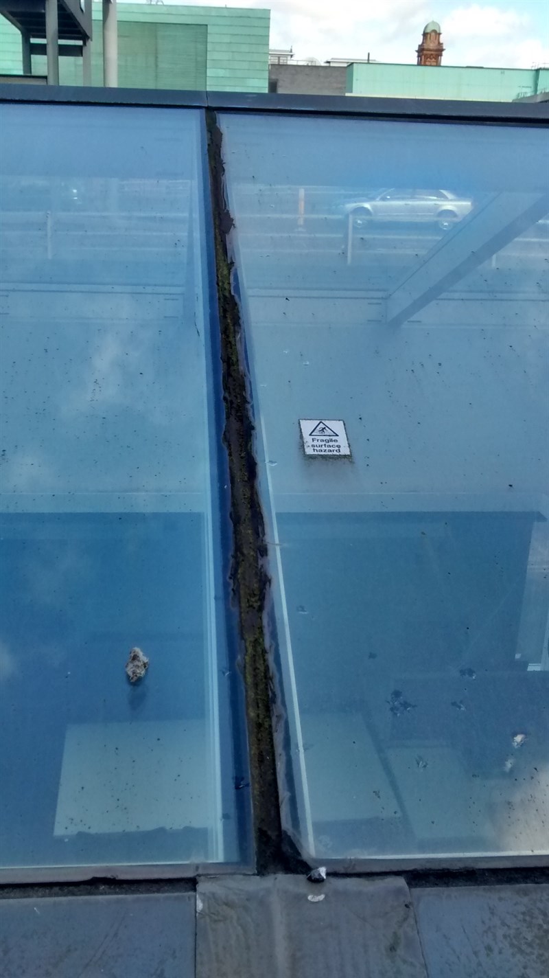 Problem: Water ingress was discovered resulting from failure of the sealing materials between the glazed units, caused by UV attack and constant movement due to thermal expansion.